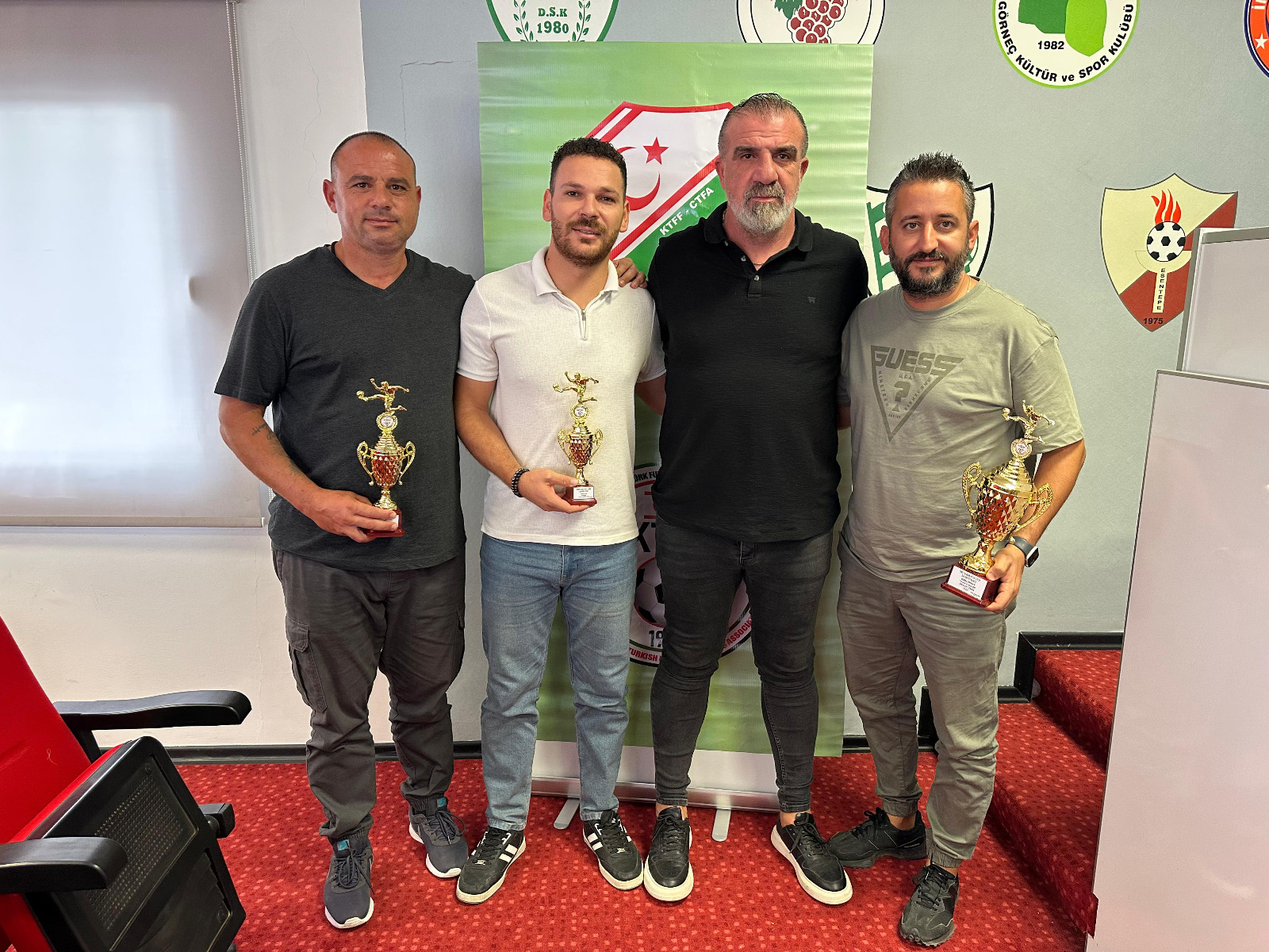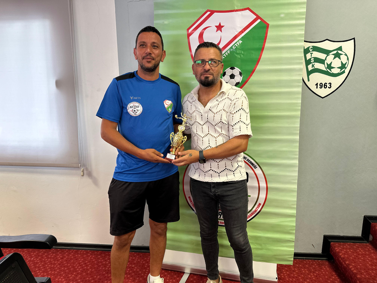 Kuzey Kıbrıs Türk Futbol Antrenörleri Derneği (KKTFAD) yönetimi ligleri tamamlanan Saydam U14 Ligi ile Digitürk Kıbrıs Bölgeler Terfi Müsabakaları (BTM) 2. Lig’de başarılı olan antrenörleri ödüllendirdi.
