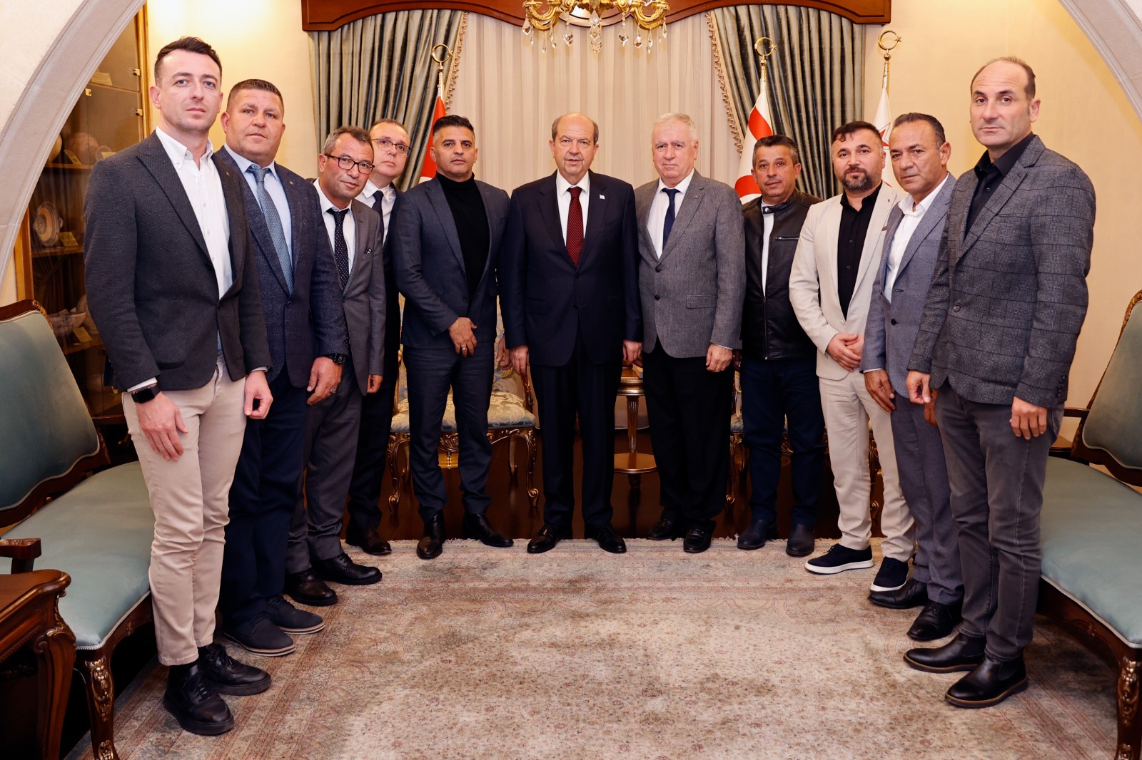 Cumhurbaşkanı’nı ziyaret eden heyete Lapta Alsancak Çamlıbel Belediye Başkanı Fırat Ataser, Lapta Türk Spor Kulübü Başkanı Muhittin Kara ve Lapta Türk Spor Kulübü yöneticileri eşlik etti.