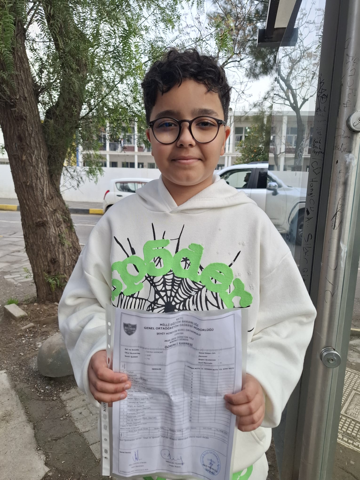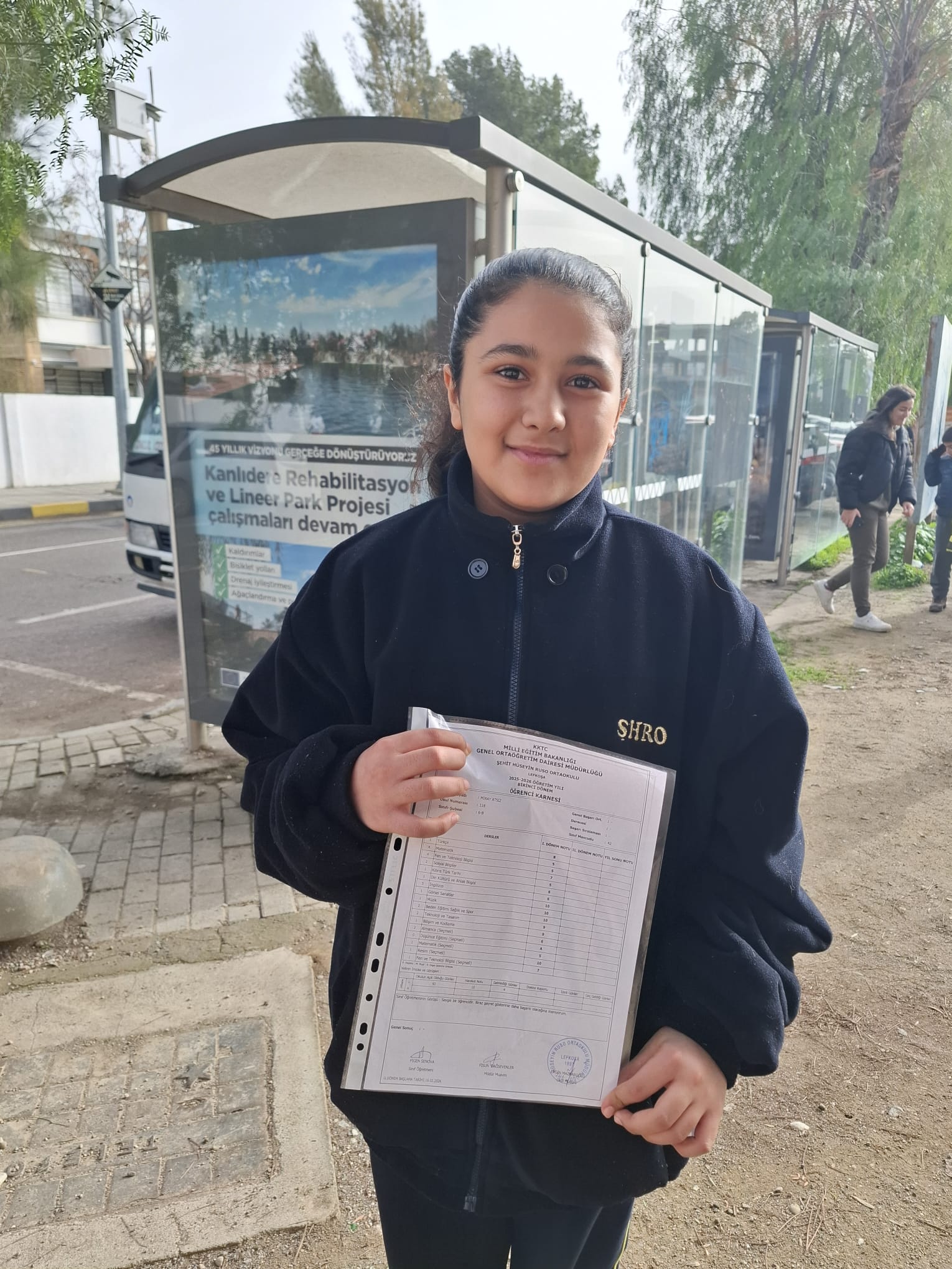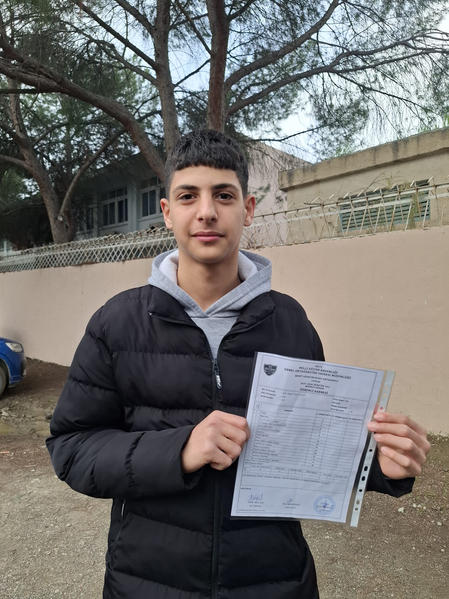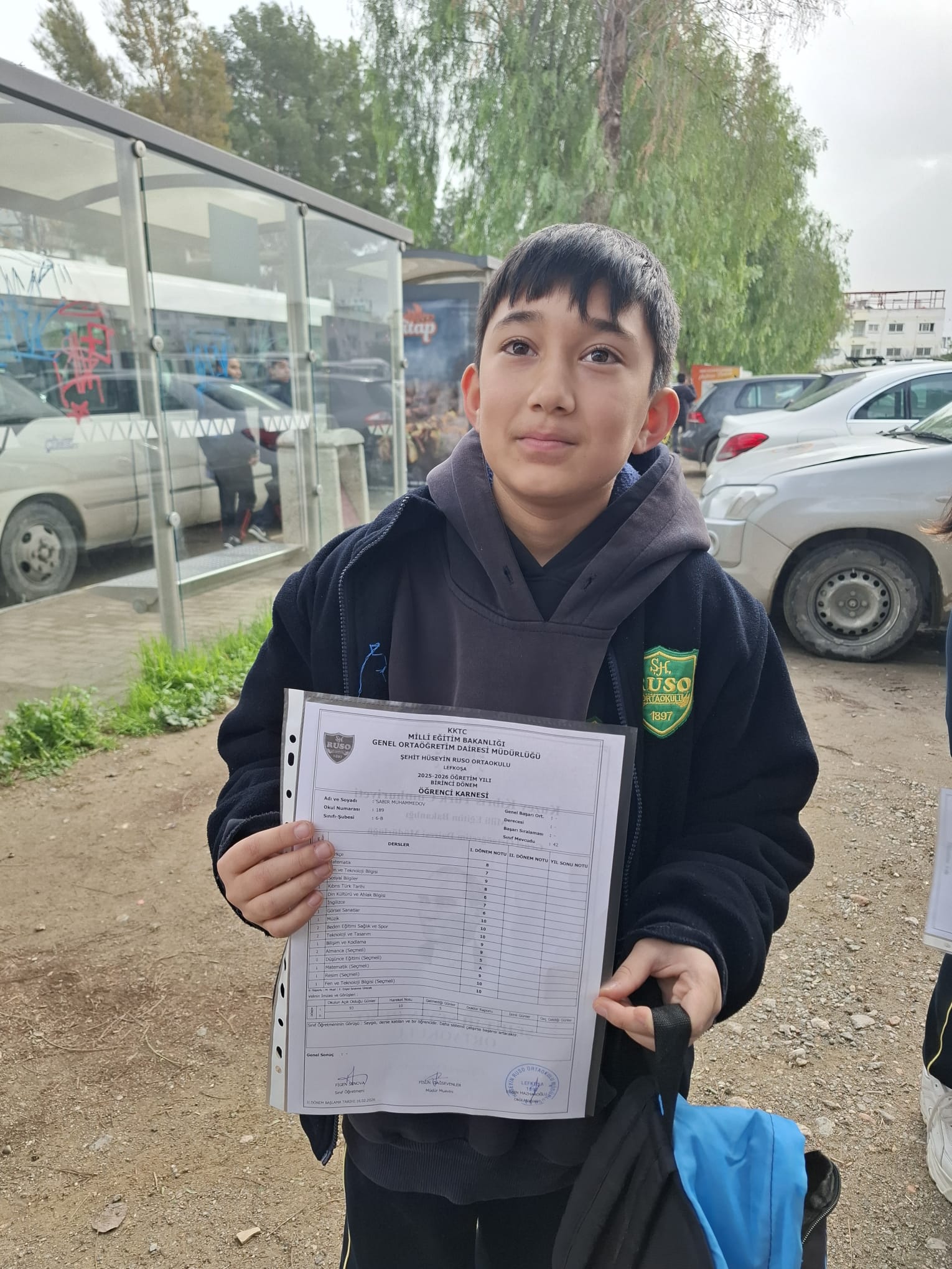 “Şehit Hüseyin Ruso Ortaokulu’na gidiyorum 6. Sınıfım. En düşük notum 8 o da Türkçe. Tatil olduğu için çok mutlu değilim, okul eğlenceliydi. Dersler de iyiydi ama çok iyi öğretenler yoktu. Derslerin biraz daha eğlenceli olmasını isterdim. Tatilde gezeceğim. Karnede dikkatimi çeken bir şey oldu; Türkiye’de karnelerde Atatürk resmi yok ama Kıbrıs’ta var. Saygı duyulmasını tercih ederim.”