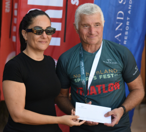 Konuşmaların ardından dereceye giren sporculara madalya ve para ödüllerini Triatlon Federasyonu Başkanı Sertaç Bozatlı ve Northernland Şirketler Grubu Pazarlama Direktörü ve Yönetim Kurulu Üyesi Feriha Yiğittürk birlikte takdim ettiler.