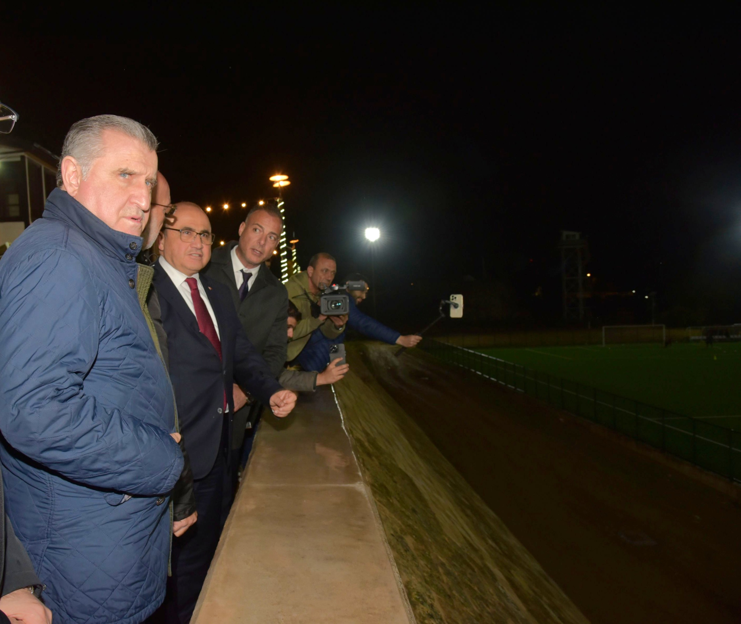 Zahra Sokak üzerinden inceleme yapan Bakan Osman Aşkın Bak’a Türkiye Cumhuriyeti Lefkoşa Büyükelçisi Ali Murat Başçeri, Çetinkaya Türk Spor Kulübü Başkanı Mehmet Tatar ve bürokratlar eşlik etti.