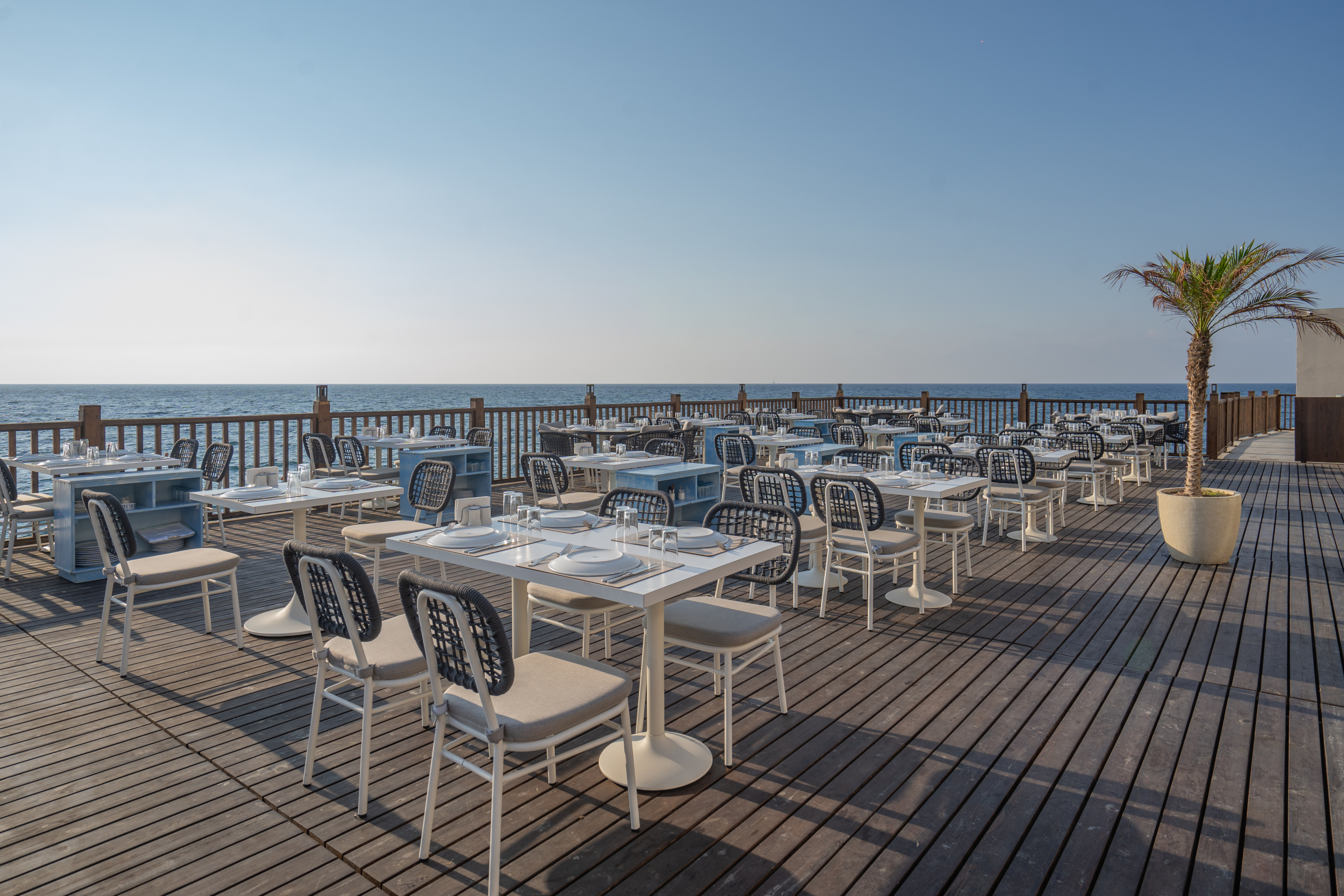 Ana restoran ve lobby alanları, modern tarzda yeniden dekore edilerek, otelin genel atmosferine yeni bir soluk getirildi. Lobby’nin en büyük eksikliği olarak görülen teras alanının olmaması sorunu, geniş bir bahçe ve terasla çözüldü. Bu yeni teras alanı, misafirlere deniz manzarasının tadını çıkarabilecekleri ferah bir ortam sunuyor. Restoran alanında yapılan değişiklikler ise, hem genişletilen teras alanı hem de yenilenen iç dekorasyon ile misafirlerin rahatlıkla yer bulabilecekleri bir ortam yaratıyor.